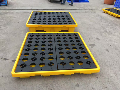 當油桶發(fā)生泄漏時,泄漏液體會沿隔板流入托盤內部,以防泄漏液體污染現(xiàn)場環(huán)境;