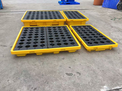 四桶防漏平臺規(guī)格:1300*1300*150/mm;自重32kg;載重3000kg;盛漏量150升;適用機動叉車;