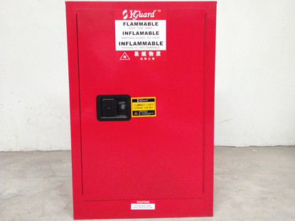 【備注】產(chǎn)品有紅(紅色指示可燃液體)、黃(黃色指示易燃液體)、藍(藍色指示弱腐蝕性液體)三種顏色,三種顏色的尺寸相同,儲放化學品類型不同。在儲存化學品的過程中,使用有色標簽來識別、整理、分開各種易燃或危險液體,這樣做同時又能在發(fā)生火災時方便消防人員識別危險。如果存放的是OSHA1910.106所提到的可燃的或易燃的化學品,存儲設備建議采用基于美國防火協(xié)會第30條規(guī)定(NFPA 30)或者統(tǒng)一火災法規(guī)79條(UFC 79)的規(guī)范所設計的防火安全柜。