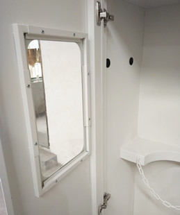 2.門板:采用可脫卸液壓靜音阻尼鉸鏈,極大程度減小了開關(guān)門時(shí)的噪音;正面帶視窗,視窗為防爆玻璃。