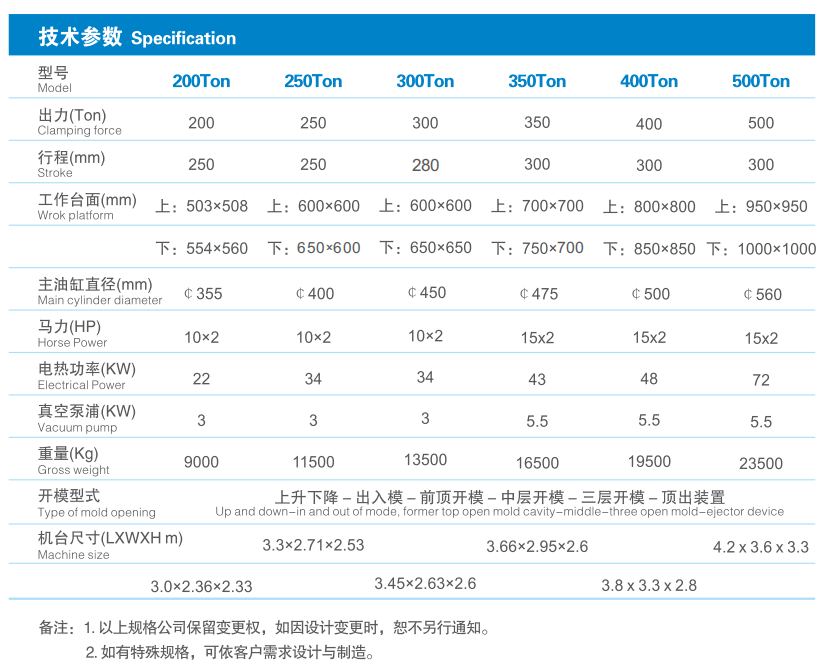 · 4RT結構特點在于超越一般傳統(tǒng)前頂式掀模,可用于三層或四層取成品之特殊模具,此功能具有掀模及中層模具個別頂出,底層模具入機,中層模具下降,頂針上升拍成品之特殊功能,可依靠操作者需要做調整;