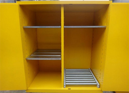 【備注】產(chǎn)品有紅(紅色指示可燃液體)、黃(黃色指示易燃液體)、藍(藍色指示弱腐蝕性液體)三種顏色,三種顏色的尺寸相同,儲放化學品類型不同。在儲存化學品的過程中,使用有色標簽來識別、整理、分開各種易燃或危險液體。這樣做同時又能在發(fā)生火災時方便消防人員識別危險。如果存放的是OSHA1910.106所提到的可燃的或易燃的化學品,存儲設(shè)備建議采用基于美國防火協(xié)會第30條規(guī)定(NFPA 30)或者統(tǒng)一火災法規(guī)79條(UFC 79)的規(guī)范所設(shè)計的防火安全柜。
